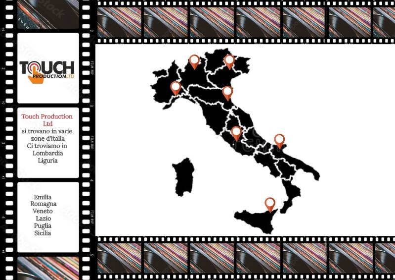 CON TOUCH CINEMA SRL, SI PRODUCONO FILM, SI REALIZZANO PROGETTI CON IL COINVOLGIMENTO DELLA PRODUZIONE E REDAZIONE, CHE SI OCCUPA DI FORNIRE TUTTI QUEI SERVIZI DI SUPPORTO ALLA CULTURA E ALL'ARTE AUDIOVISIVA, MA SOPRATTUTTO ALLA LOGISTICA, AL SERVIZIO SERVICE E NOLEGGIO, AD ELABORARE TUTTA LA DOCUMENTAZIONE BUROCRATICA, NECESSARIA PER OTTENERE I FONDI EUROPEI, I CONTRIBUTI E LA TAX CREDIT, OLTRE CHE AGENZIE DI FINANZIAMENTO E LA RICERCA DI SPONSOR, VERI PROTAGONISTI PER LE RISORSE E ASSISTENZA IN ALLOGGI, PASTI E ALTRI MATERIALI ED ATTREZZATURE, E UNA PICCOLA SQUADRA SI OCCUPERÀ DEI VIAGGI E DELLA RICERCA DELLE LOCATION.